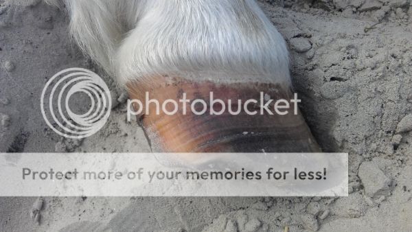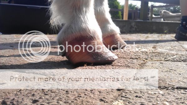 Wichtig finde ich dabei das die Vorbesitzerin sämtliche Anzeichen für eine Hufrehe komplett ignoriert hat, weder die typischen Fettpolster die er an Mähnenkamm, Schulter, Flanke und Schweifansatz hatte, noch die abfallenden Rillen in den Hufen, zudem hatte er schon deutliche Quetschungsrillen in den Hufen die zeigten wann er schon mal schübe mit veränderungen im Huf hatte.